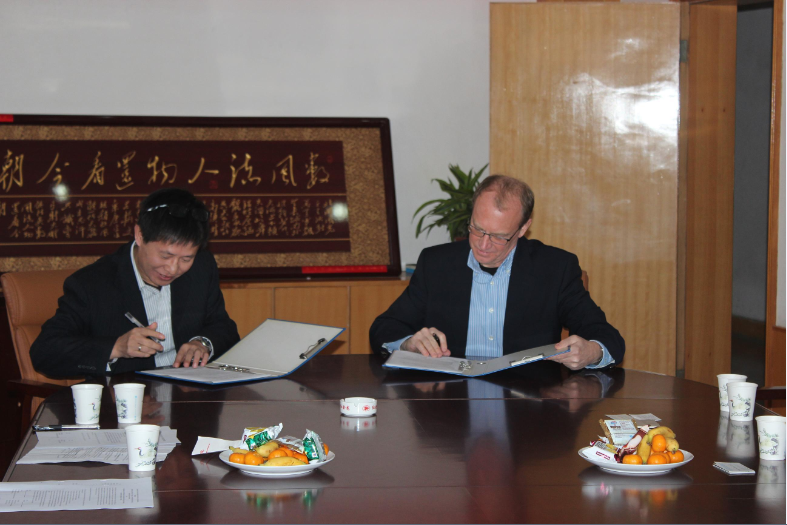 The Dean, professor Fang Qing signing the agreement with professor Per F.V.Halse in the Royal School of Library and Information Science of the Kingdom of Denmark