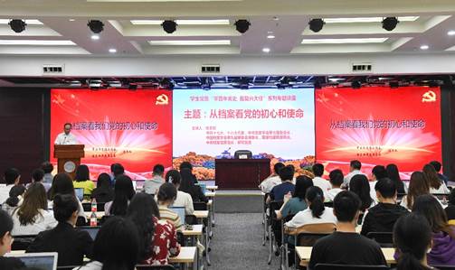 讲座在《共产党颂》歌曲声中正式开始。这首由杨冬权作词的歌曲,高度概括了中国共产党的光辉历史,是一部浓缩版、袖珍版的党史。歌词中虽未提及“中国共产党”五个字,却无不流露出对党的无限崇敬与热爱之情,也让我们从中体会到了党的本心和初心。