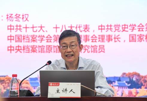 通过三组档案,杨冬权提出认识:我们党从成立起,就不为争取个人利益,而是为了实现共产主义;我们党在成立时,党员思想并不完全一致,因此需要进行党员干部的思想教育;我们党从成立起就很民主;理想很崇高,但实现理想需要经历艰难险阻;实干是第一位的,干成一番事业是最重要的;看历史,要善于看主流,看大节,并根据主流和大节而不是支流和细节去下结论;出发了,上路了,不等于大功告成;好记性不如烂笔头,要发挥档案的凭证和记忆作用。