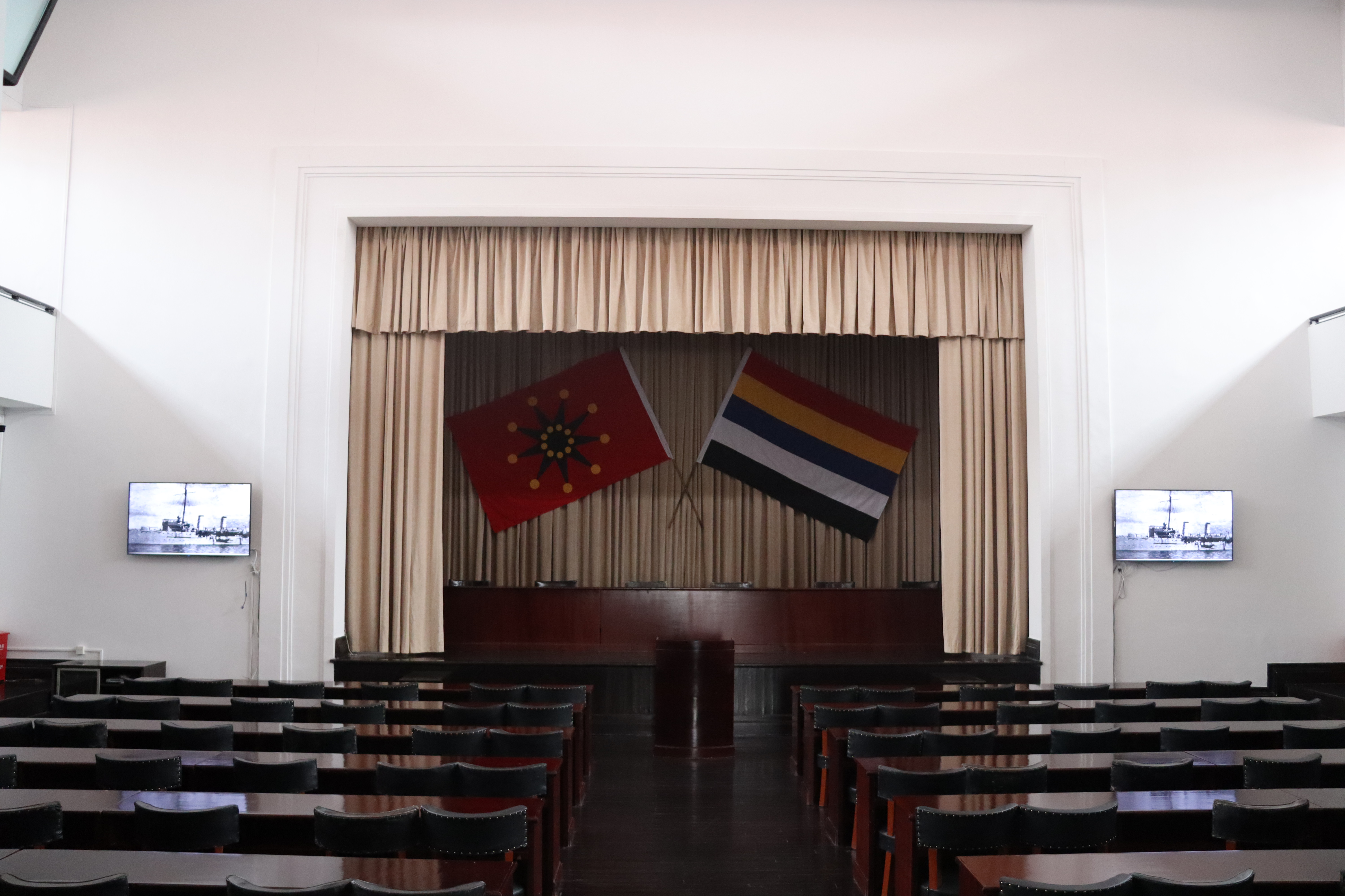 参观临近尾声,同学们进入鄂军都督府复原旧址,依次参观了谋略会议室、军令部、外交部等办公场地。红木桌椅,青灯为伴,尽显历史厚重的气息,生动再现了沉默在历史长河里的风容风貌。