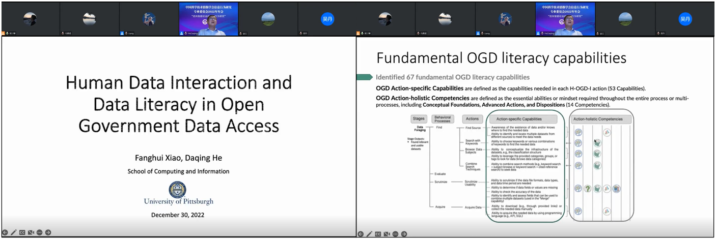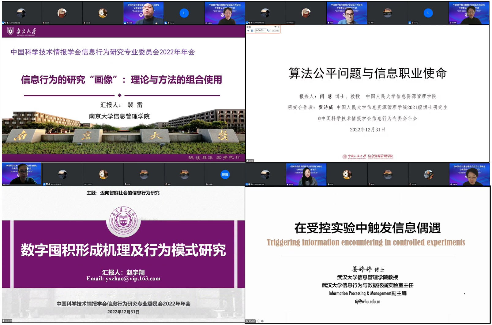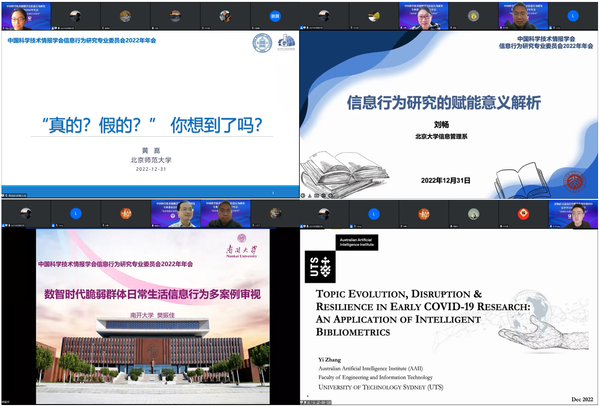 (通讯员梁少博)12月31日,由中国科学技术情报学会信息行为研究专业委员会主办,3044永利集团、3044永利集团大数据研究院、3044永利集团人机交互与用户行为研究中心、Data and Information Management期刊联合承办的信息行为研究专业委员会2022年年会在线上成功举办。来自中国、美国、澳大利亚、德国等国家和地区的588位专家学者和研究人员围绕“迈向智能社会的信息行为研究”主题进行了深入交流。