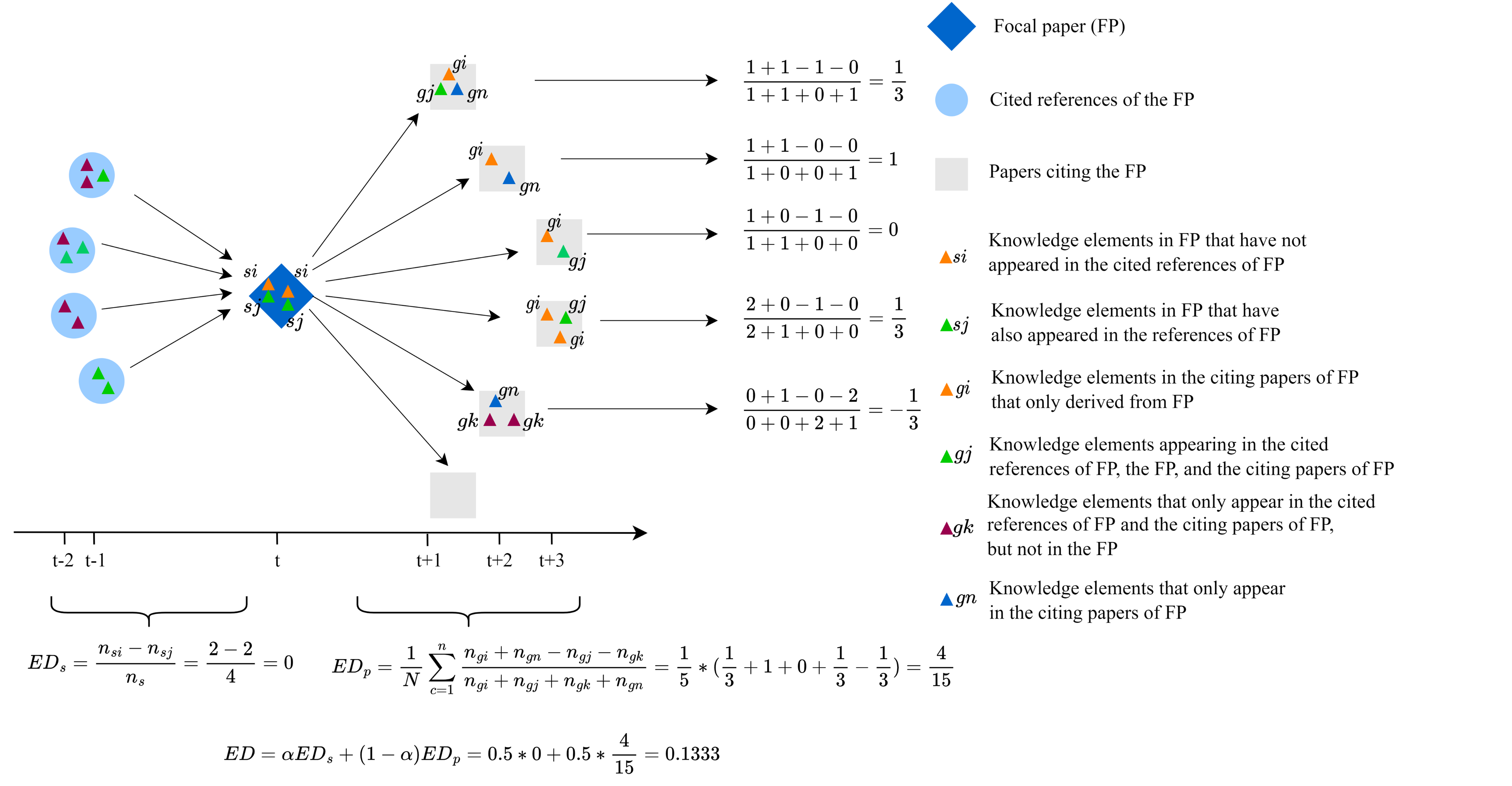 突破性论文测度可以用于追踪和预测科学的新兴领域,并辅助利益相关者在资助分配、就业和科学奖励方面做出更明智的决策。然而,突破性论文很难明确定义。因此,前人尝试依据突破性论文的不同特征,识别出突破性论文辨别通道,并提出测度方法。以往研究多基于引文模式来测度突破性论文,而对知识内容的关注较少。与引文相比,知识内容能够更直接反映出一篇文献对现有知识空间的贡献。基于此,该文综合考虑引文模式和知识内容特征,提出了一种新的基于知识实体的颠覆性指标来测度突破性论文。
