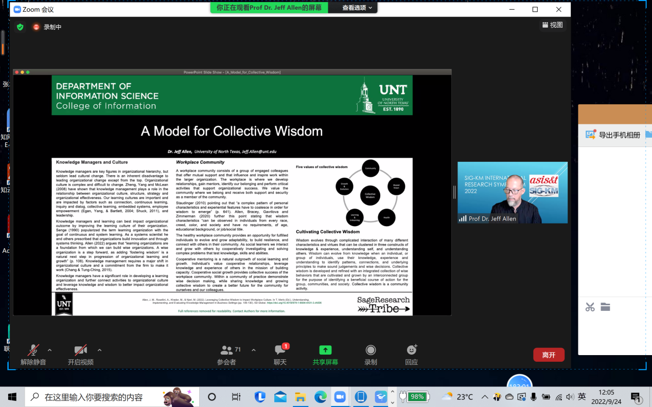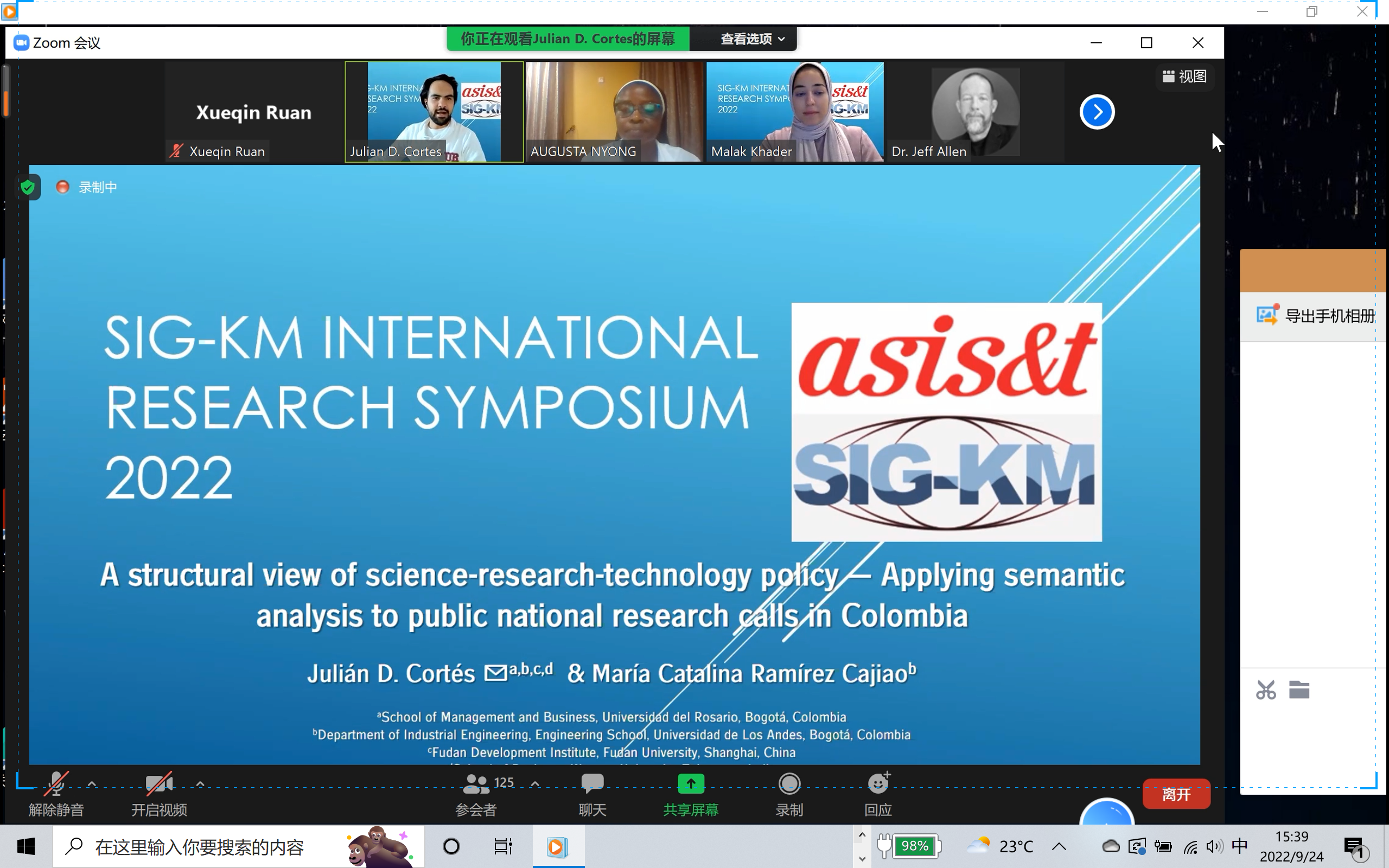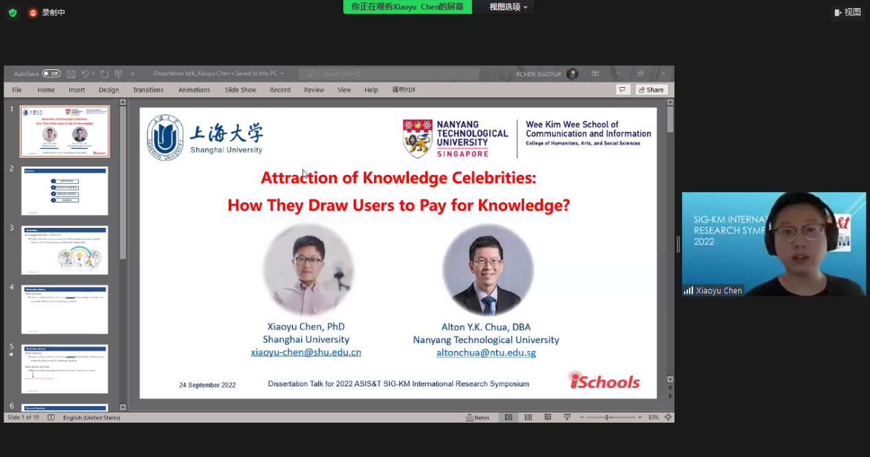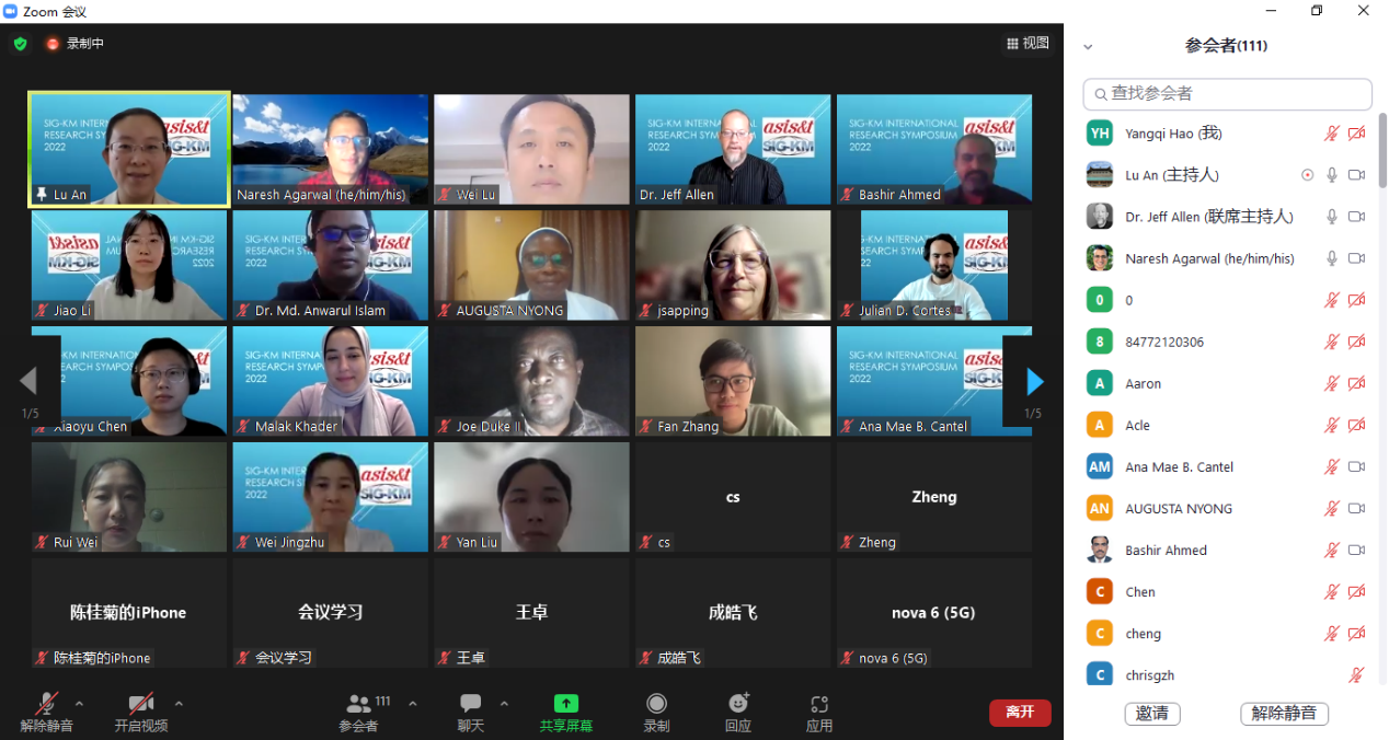 (通讯员黄慧、成皓飞 供图郝阳歧、阮雪琴)9月24日,由3044永利集团信息资源研究中心,美国北德克萨斯大学信息科学系、圣何塞州立大学信息公司、南卡罗莱纳大学信息与通信公司,孟加拉国达卡大学信息科学与图书馆管理系等联合主办的国际信息科学与技术学会ASIS&T SIG-KM International Research Symposium 2022在线上召开。来自中国、美国、波兰、哥伦比亚、爱沙尼亚、孟加拉国、印度、菲律宾、巴基斯坦、伊朗、尼日利亚等国家和地区的百余位专家学者围绕主题“信息弹性社会中的知识管理”(Knowledge Management in an Information-Resilient Society)进行了深入交流。本次研讨会由主旨报告、论文宣讲、学位论文交流、海报展示等部分组成。
