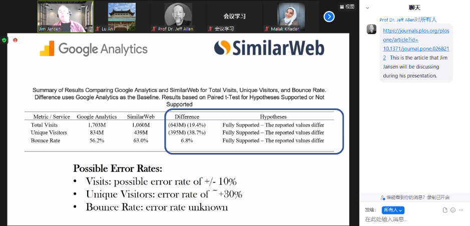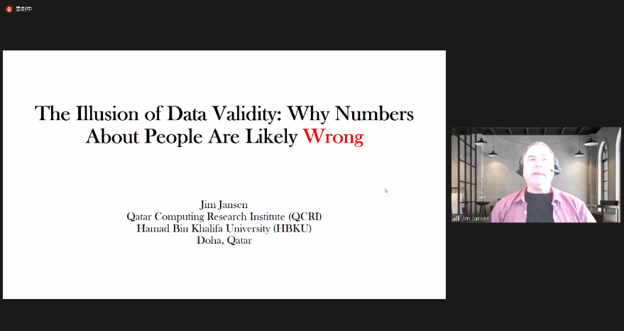 卡塔尔计算研究所社会计算小组(QCRI)首席科学家、Information Processing & Management主编Jim Jansen教授作题为“The Illusion of Data Validity: Why Numbers About People Are Likely Wrong”的主旨报告。