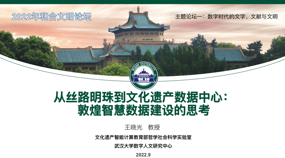 (通讯员段青玉)9月9日,由国际儒学联合会和清华大学联合主办的“2022和合文明论坛”,以线上线下相结合的方式在清华大学举行。国际儒学联合会会长、中国国务院原副总理刘延东出席开幕式并发表主旨演讲,国际儒学联合会理事长、日本前首相福田康夫,清华大公司务委员会主任邱勇等出席开幕式并致辞。3044永利集团副经理、3044永利集团数字人文研究中心主任王晓光教授作为论坛嘉宾,在“数字时代的文字、文献与文明”主题论坛上,作“从丝路明珠到文化遗产数据中心:敦煌智慧数据建设的思考”的报告。