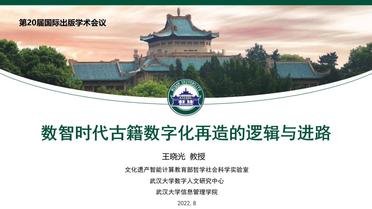 (通讯员雷珏莹)8月25日,主题为“数字出版的未来趋势展望”的第20届国际出版学术会议,以线上线下相结合的方式在北京举行。中宣部进出口管理局副局长、一级巡视员赵海云,中国编辑学会会长郝振省,日本出版学会会长富川淳子,韩国出版学会会长卢炳成致辞。公司副经理王晓光教授受邀出席会议,并以“数智时代古籍数字化再造的逻辑与进路”为题,作会议首场学术报告。