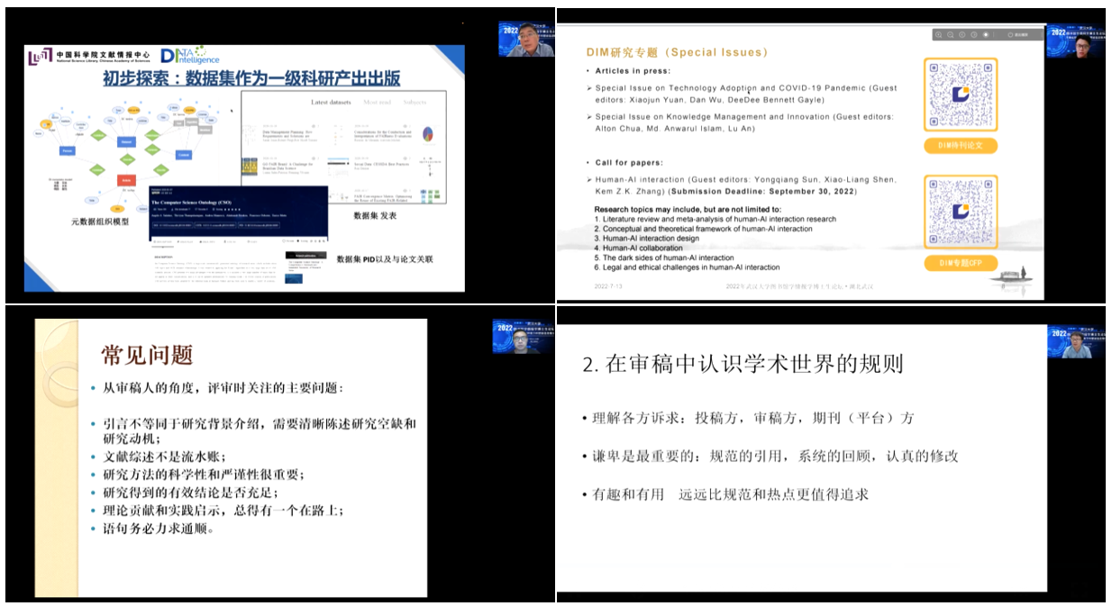 图书情报学术期刊沙龙包括国内图情学科英文期刊介绍、优秀审稿人经验分享以及优秀作者经验分享等三个部分。在国内图情学科英文期刊介绍环节,Journal of Data and Information Science副主编沈哲思介绍了该刊的创刊、发展、受助情况,以及期刊的收稿类型等。Data Intelligence编委顾东晓介绍了该刊的收录情况,并分享了该刊定期组织的各种学术活动。Data and Information Management是公司主办的英文期刊,副主编沈校亮介绍了期刊的基本情况、编委组成、作者分布、投审稿流程、收稿类型和专题组稿等,提出了“共建学术共同体、开拓发展新格局”的办刊构想。南京理工大学赵宇翔教授、中山大学肖鹏副教授作为优秀审稿人代表,提出了如何应对学术期刊审稿意见的建议。北京大学刘畅副教授、南开大学樊振佳副教授作为优秀作者代表,向与会博士研究生分享了如何更科学、合理地进行投稿。公司期刊中心主任宋恩梅主持沙龙。