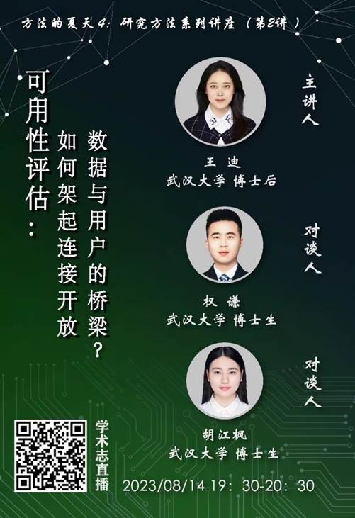 开放数据是数据要素的有机组成部分,在推动经济转型发展、创新社会治理模式和服务民生建设等方面能够发挥重要作用。可用性这一概念源自人机交互领域,是用户接受并利用一项技术的前提条件,广泛适用于交互性信息系统的各个方面。可用性评估有助于提升一项信息技术的用户友好性与接受度,能够为改善信息系统设计提供有效思路,目前已成为开放数据研究领域广泛使用的研究方法之一。本次分享将以包括政府数据、科研数据和行业数据在内的开放数据为研究对象,从开放数据本身与开放数据平台两个角度,探讨不同情境下的可用性评估研究的设计思路、细分方法和操作步骤。