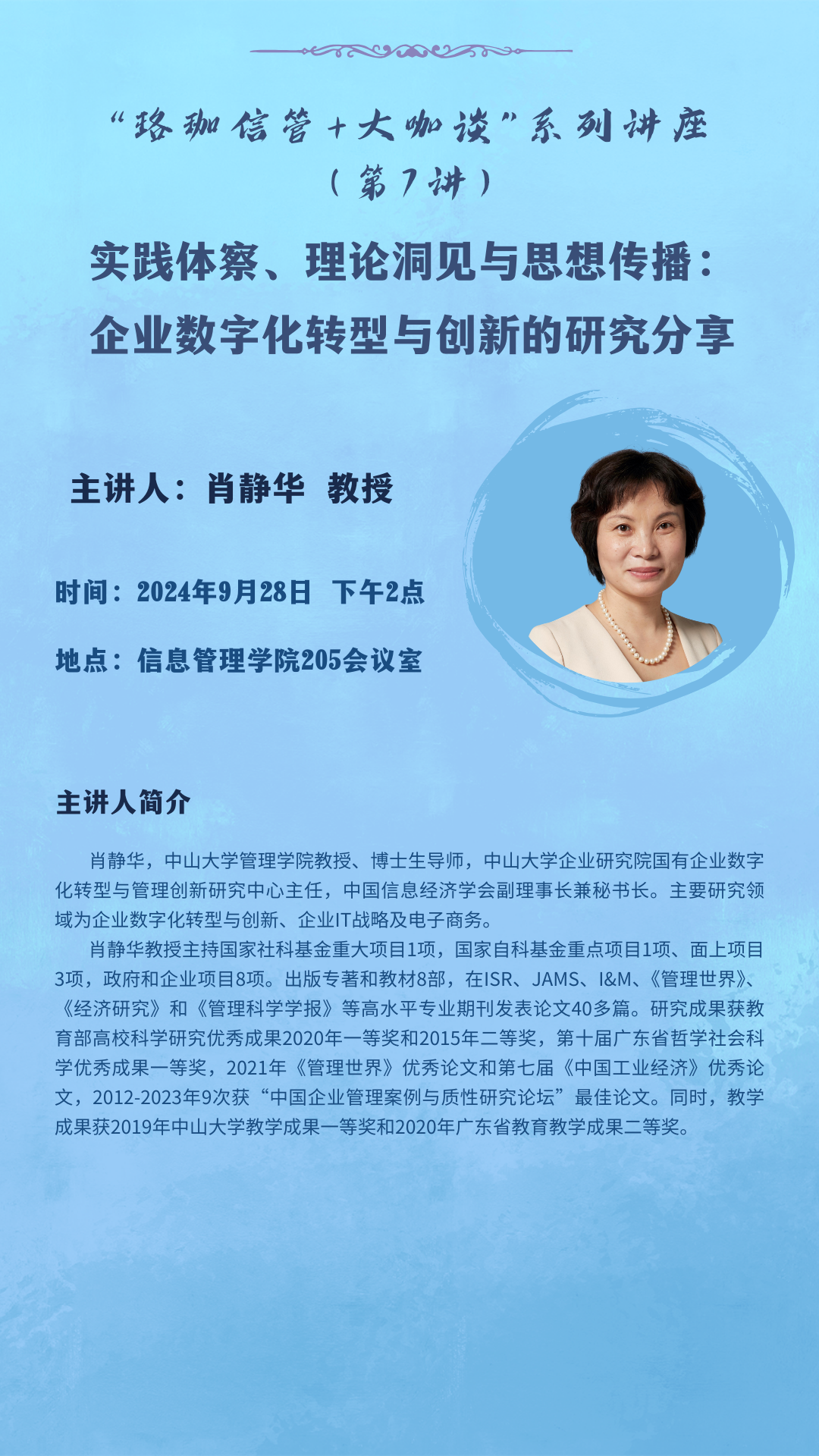 主 题:实践体察、理论洞见与思想传播:企业数字化转型与创新的研究分享