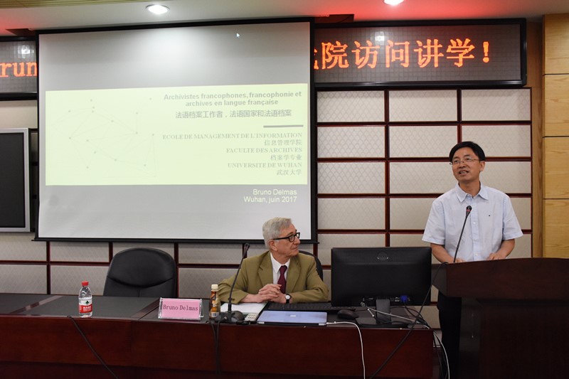 上午10:00,公司212报告厅,Delmas院士为公司师生以及来自校外的档案学专家和员工做《法语档案工作者,法语国家和法语档案》专题讲座。讲座由周耀林副经理主持。