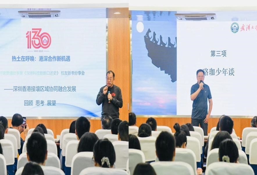 据介绍,张克科院友1982年毕业于公司图书馆学系,现为深港澳科技联盟顾问、深圳市决咨委先行示范区湾区组专家、深圳市政协研究咨询委员会委员、海峡两岸暨港澳协同创新联盟理事。何五元员工1984年毕业于公司中文系,现为云创数字科技董事长,是《珞珈赋》和“永是珞珈一少年”金句的作者。本次分享会是公司迎接校庆130周年的活动之一。