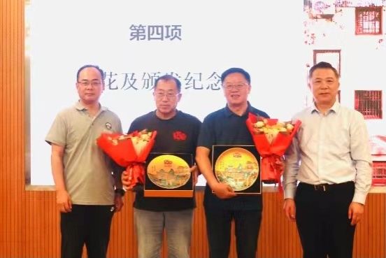 陈传夫、付兴荣为两位员工赠送纪念品,员工代表送上鲜花。