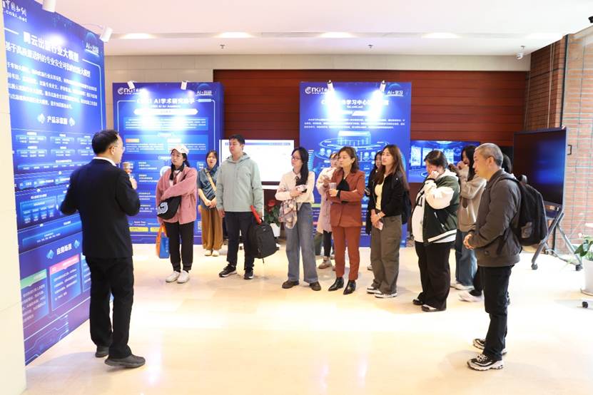 在同方数科,专家们向师生详细讲解了数字出版技术的最新进展,特别是其自主研发的AI排版与智能审校系统,生动展现了出版行业技术革新的巨大潜力。师生们通过与行业专家的互动交流,深入了解了数字出版和知识服务领域的前沿技术及面临的挑战,真切领略到出版知识服务产业链的运作模式,拓宽了专业视野。