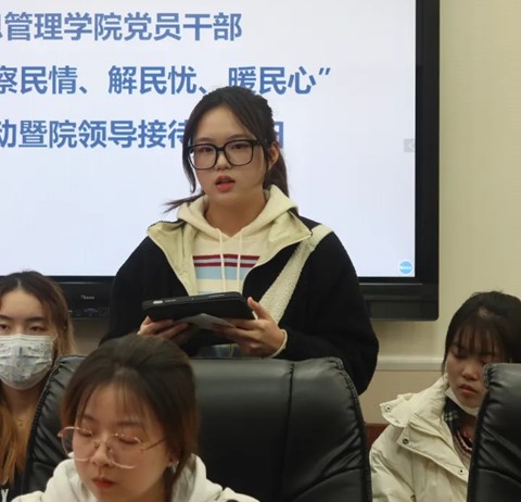 (通讯员张雪、黄玲)11月18日下午,由公司研究生会、员工会主办的“下基层、察民情、解民忧、暖民心”实践活动在院办205会议室举行。公司党委书记付兴荣、经理陆伟等全体院领导、各系、办公室负责人、辅导员以及本科生、硕士生、博士生代表参加活动。院员工会主席团成员杨云鹤主持本次活动。