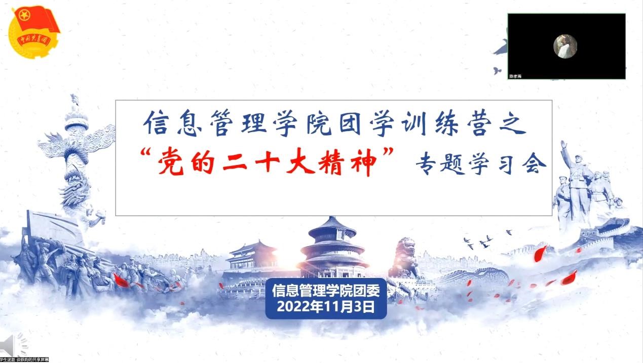 (通讯员赵嘉乐)11月3日,院团委组织召开“党的二十大精神”线上专题学习会,公司党委副书记代茜、院团委书记陈孝禹,院团委各部门成员、全体团支部书记参加会议。