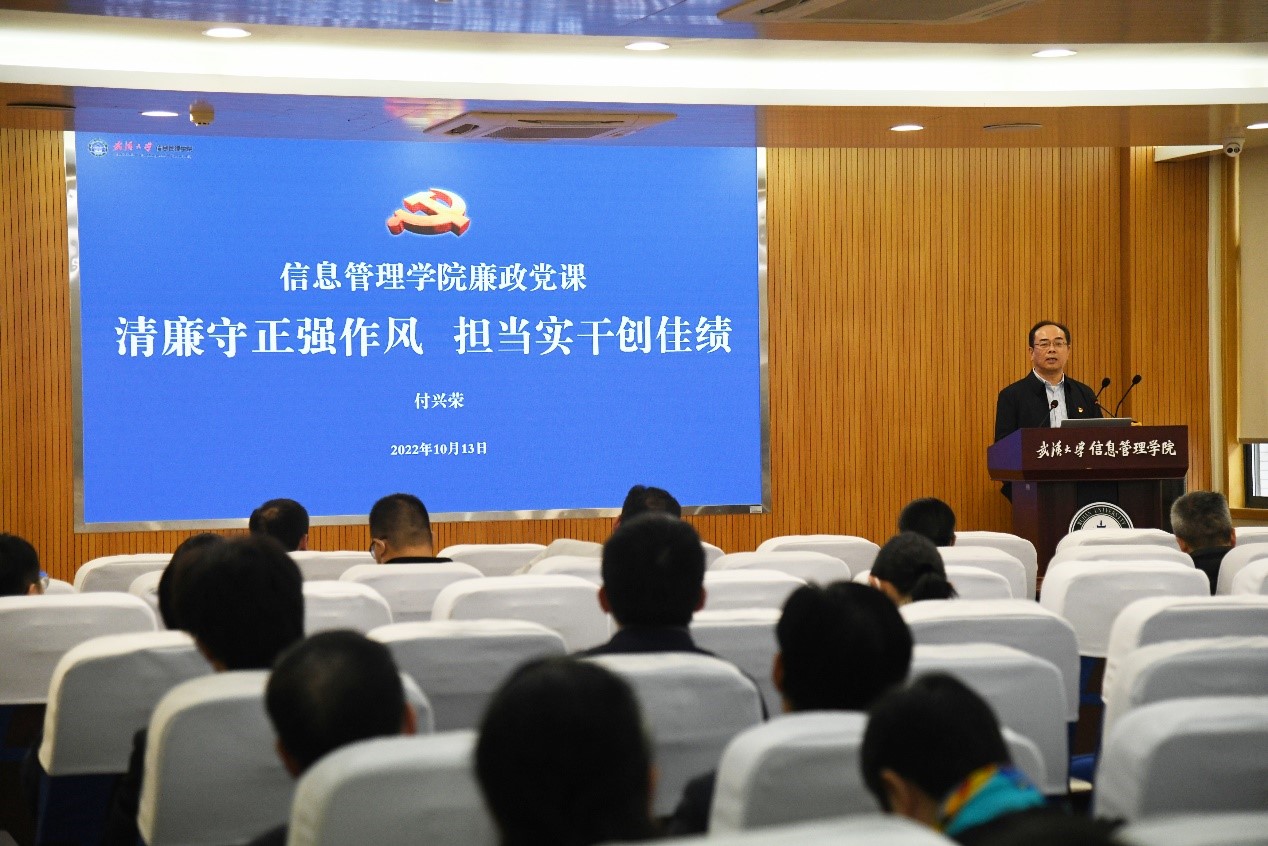 会上,付兴荣首先以“清廉守正强作风,担当实干创佳绩”为主题,讲授了一堂专题廉政党课。他阐述了廉政建设的必要性,结合实例讲解了国家反腐败斗争和高校廉政建设的基本情况。从当前高校巡视巡查以及审计工作反映出来的问题入手,对部分公司公开通报的违法违纪情况以案说纪,着重强调了当前公司党风廉政和师德师风建设工作中的纪律红线。他指出,全院教职工要时刻保持清醒头脑,加强自我约束,在公司产品、学术科研、管理服务等领域要遵章守纪,坚守底线,令行禁止。