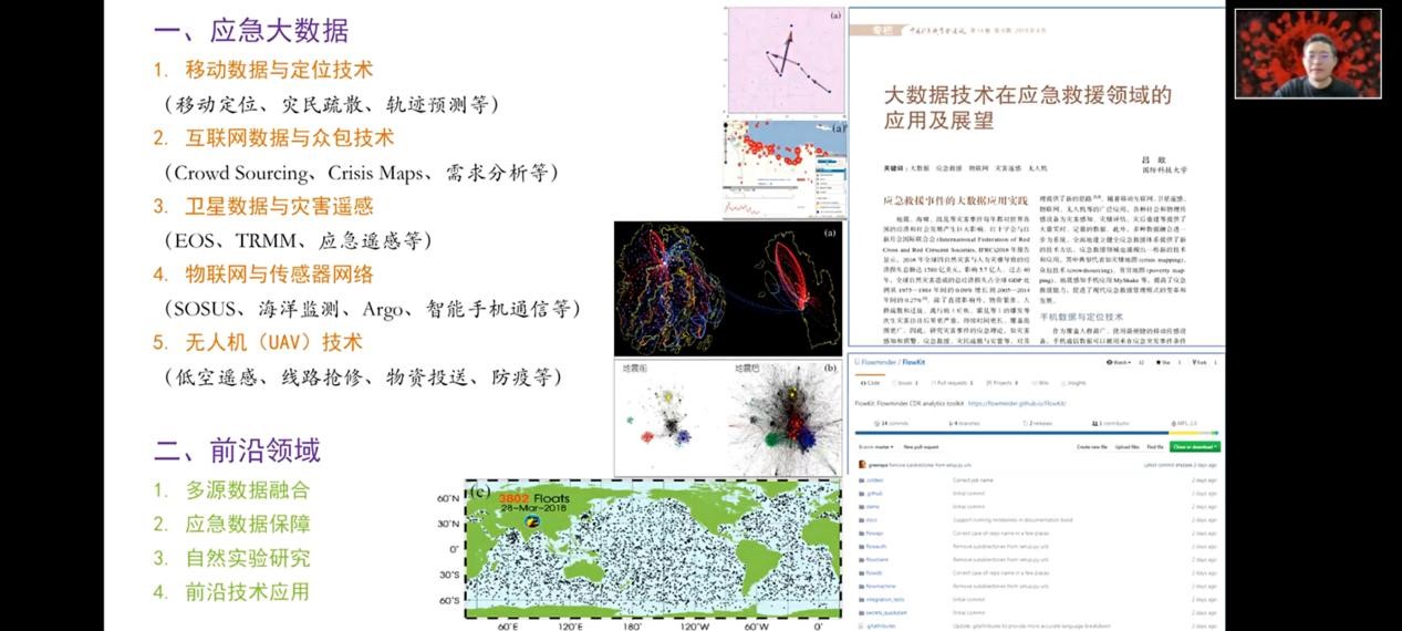 7月8日上午,国防科技大学吕欣教授的线上讲座“大数据挖掘与应急管理”揭开了暑期公司的序幕。吕教授以文献研读方式讲解了大数据技术在地震、疫情等应急救援领域中的应用。