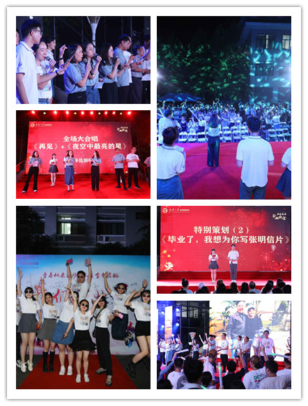 由院领导、辅导员老师及全体工作人员领唱、全场合唱的《再见》《夜空中最亮的星》将晚会推向最高潮。观众席中荧光棒挥舞、闪光灯点点闪烁,照亮夏日夜空。前途无限,愿2022届毕业生闪耀光芒,成为最亮的星。