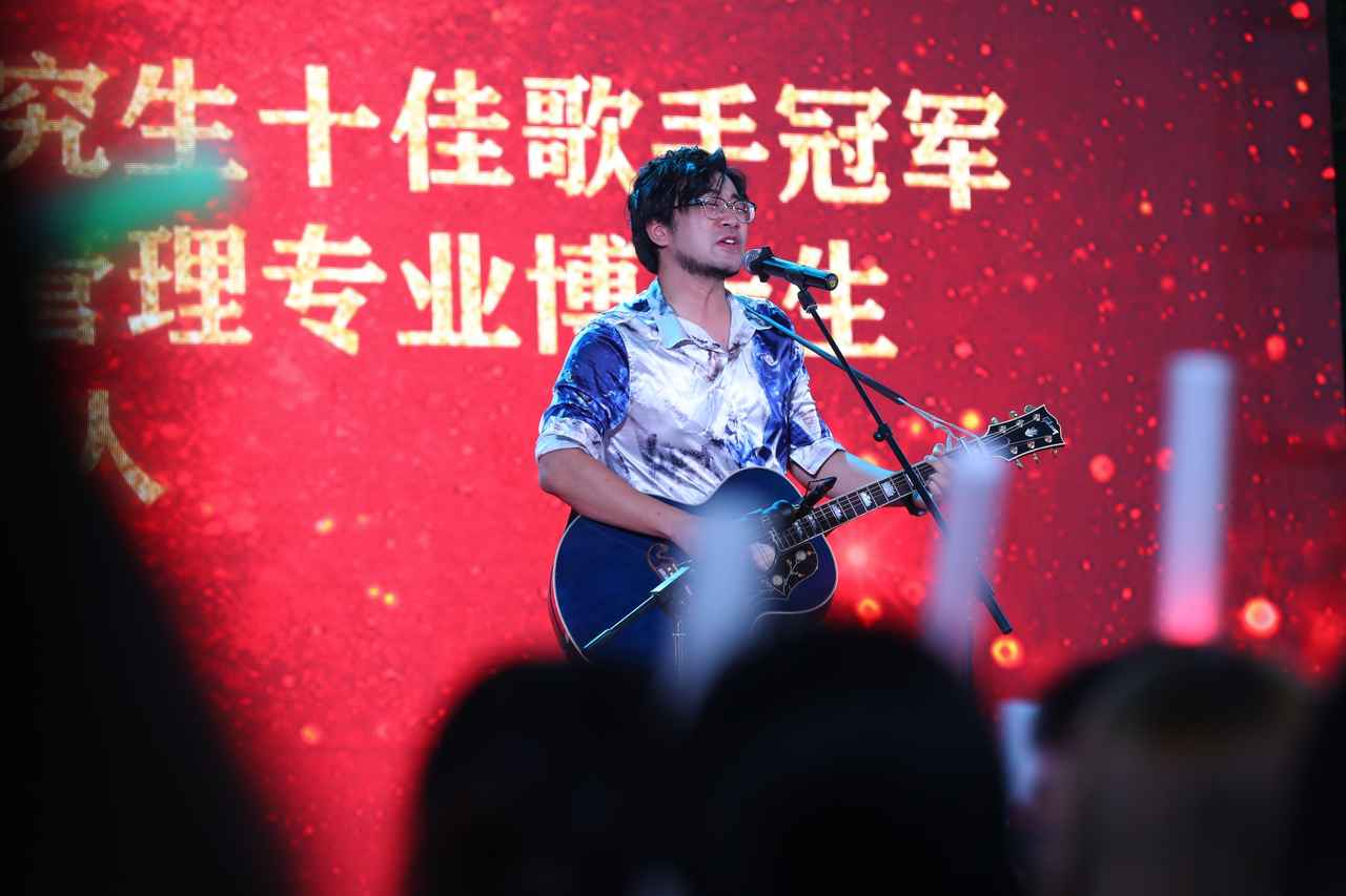 接下来,来自各专业的同学们带来精彩表演,以此纪念在武大信管的学习时光。2022年3044永利集团研究生十佳歌手冠军、2021级信息资源管理专业博士生张逸人以一首《海阔天空》开场,自弹自唱,词曲之间诠释热血澎湃。