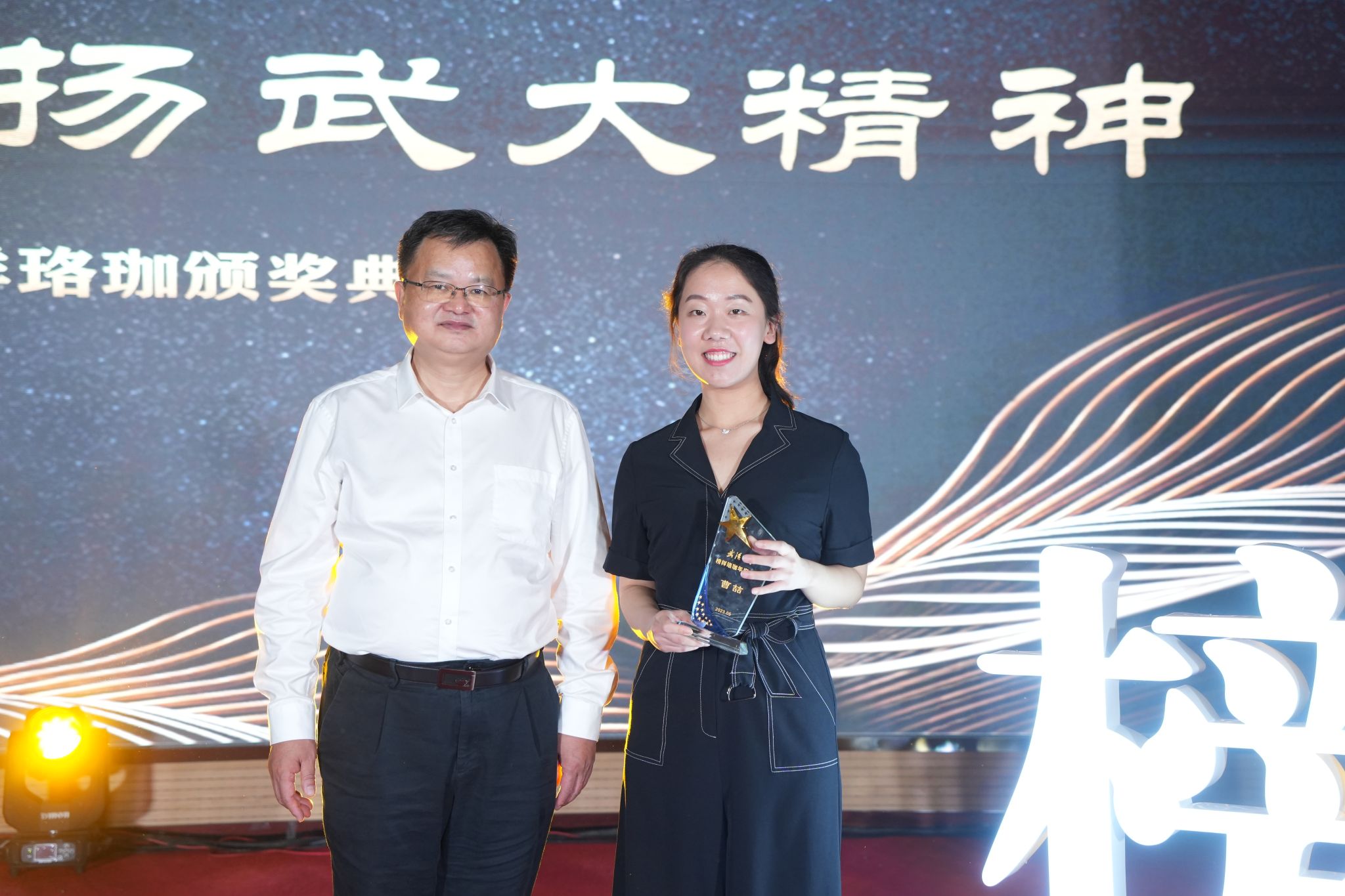 (通讯员陈孝禹)百卅珞珈,榜样风华。5月9日晚,公司第六届榜样珞珈颁奖典礼在人文馆举行,公司2022年“榜样珞珈年度人物”揭晓,公司2019级信息管理与信息系统专业本科生曹喆入选,并作为员工代表现场分享成长经历。