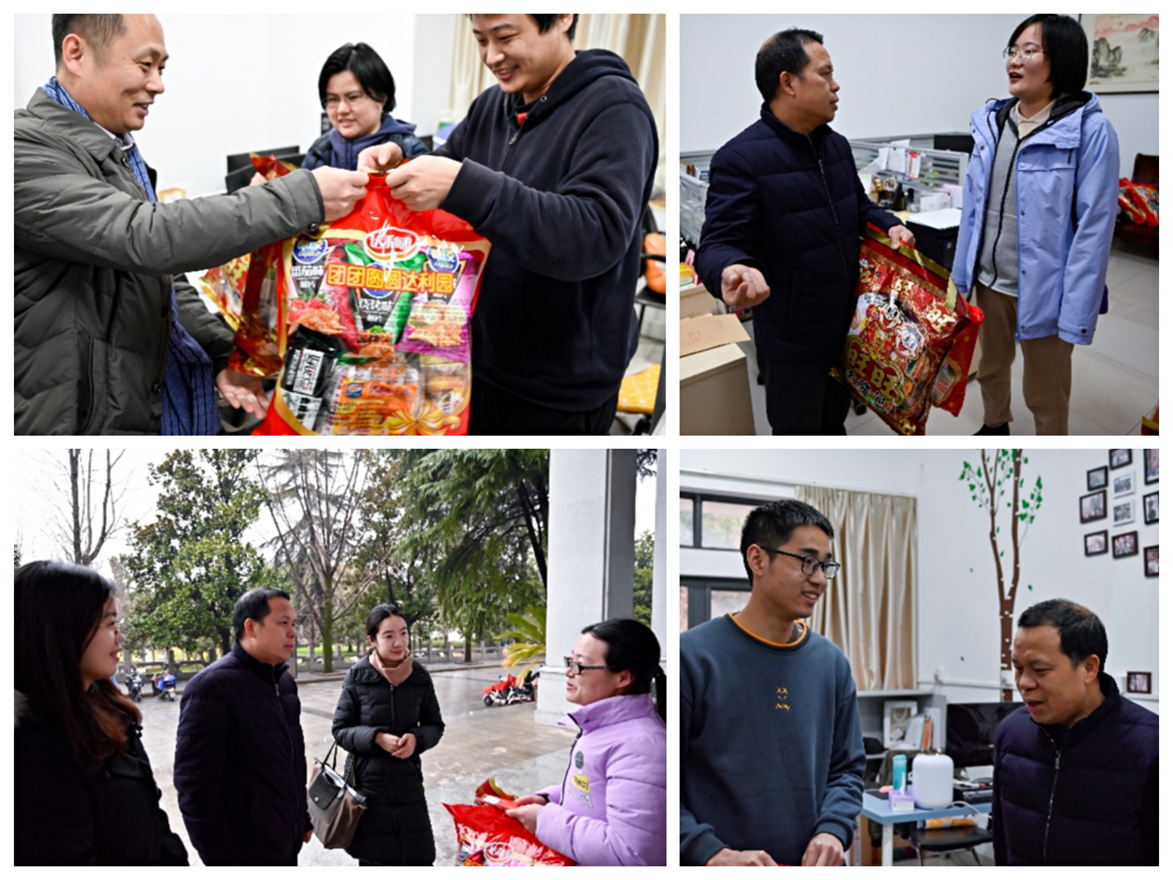 (通讯员范秋砚 摄影居辰轩)祥虎献瑞,温暖而至。2022年1月26日,恰逢农历南方小年,公司经理陆伟,公司党委副书记江尧林,研究生专职辅导员雷婷、兼职辅导员范秋砚等来到公司实验室、公司图书馆和员工宿舍,看望慰问了寒假留校过年的研究生同学,为他们送上新年慰问礼包和团年饭餐券。