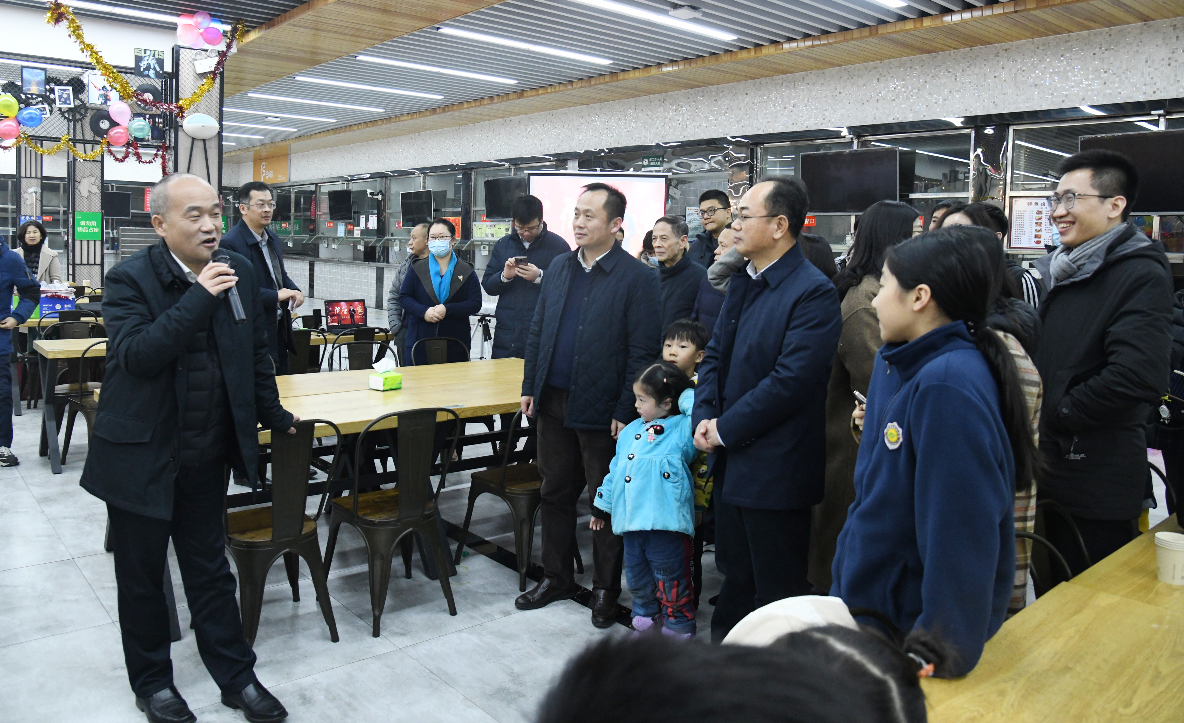 1月11日是本学期公司教职工上班的最后一个工作日。当晚,由公司工会主办的“信管一家亲”2022年教职工迎春联欢会在枫园风味食堂拉开帷幕。公司党委书记付兴荣、经理陆伟等全体领导班子成员,教职工等80余人欢聚一堂,共贺新春。活动现场彩色气球和彩带高悬,红色横幅渲染着浓浓的喜庆氛围。