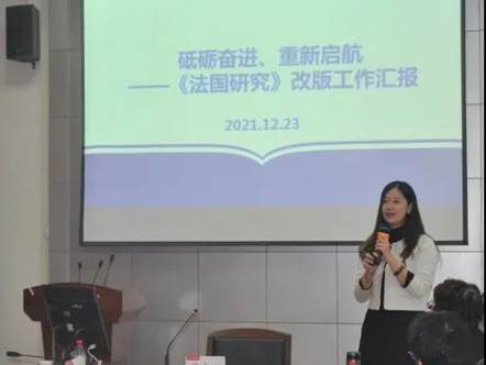 王玉珏汇报了《法国研究》改版工作。她指出,创刊于1983年的《法国研究》是全国唯一针对法语国家及地区的区域国别研究期刊。在过去的一年里,通过新建核心团队、重组编辑委员会、规范用稿流程等举措,期刊逐步实现了从语言文学类向政治学类区域国别研究期刊的转型。王玉珏表示,面向未来,《法国研究》将做好联络、交流、约稿、推广工作,继续参与、支持与法国研究相关的学术活动,围绕“国际传播能力建设”“区域国别研究”做好文章,推动国内法国区域研究学术共同体的形成,全面提升影响力和美誉度,努力成为拉动“法语地区(含非洲)”学术发展的重要抓手,成为中法人文交流的重要桥梁。