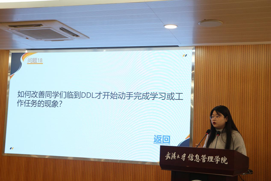 答辩展示后,各班级代表通过抽签回答了班级建设中的问题,交流了工作的重点和难点。
