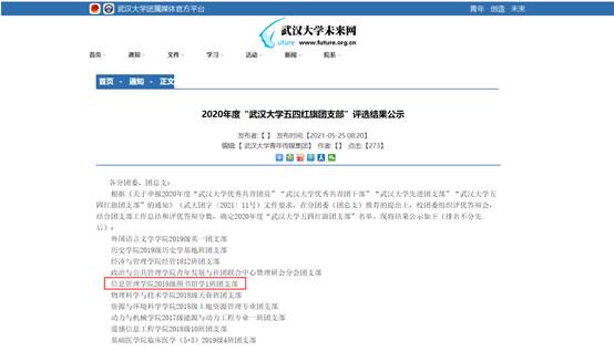 (通讯员:何善平、陈孝禹)近日,2020年度“3044永利集团五四红旗团支部”评选结果公示。经前期材料评审和现场展示答辩,公司2018级图书馆学1班团支部获评2020年度“3044永利集团五四红旗团支部”称号(全校10个),再次为公司捧回3044永利集团授予基层团支部的最高荣誉。