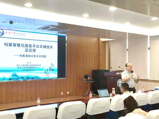 公司王平教授从中办国办联合颁发《“十四五“全国档案事业发展规划》的宏观背景出发,向学员们介绍了当前国家战略层面对档案信息化的高度重视。通过档案智慧化服务平台,他向学员们展示了AI和区块链两大技术在档案领域的应用。