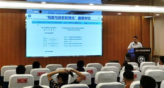 7月16日,学员们迎来暑期公司的最后一课。湖北省档案馆(局)副馆(局)长刘晓春研究馆员向学员们解读了档案工作的三个走向——走向依法管理、走向开放、走向现代化。他阐释了档案工作中的新发展理念——创新发展、协调发展、绿色发展、开放与共享,向学员们展示了湖北省档案馆的档案项目,让学员们对省级档案馆的工作内容有了一定程度的了解。