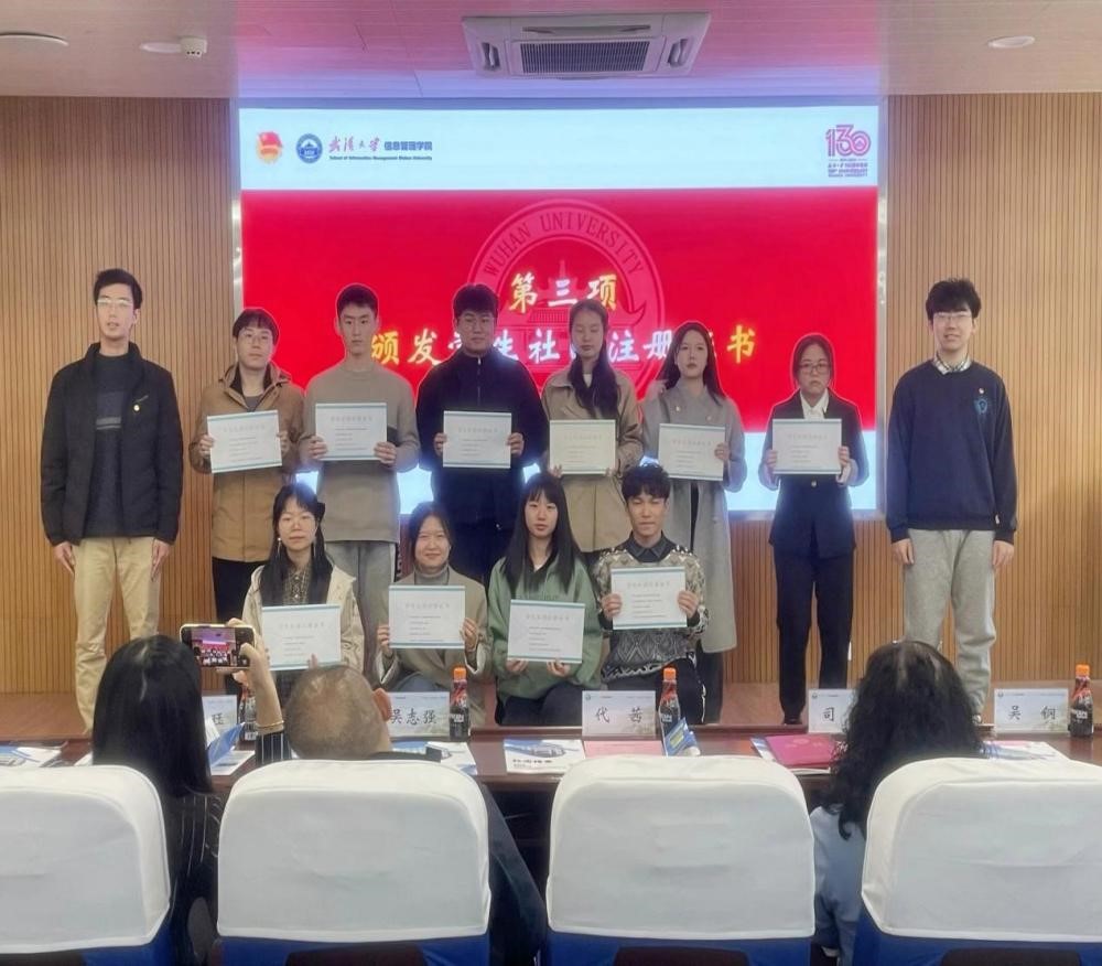 张凯宁、副主任郑梓阳为公司10个员工社团颁发了社团注册证书。