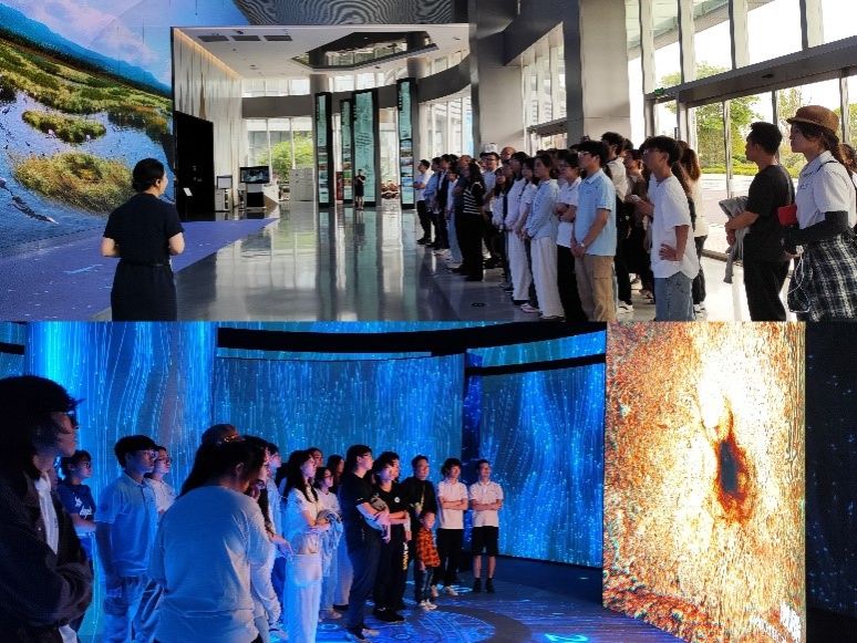 随后,师生一行前往江西省博物馆,共同欣赏了一场视觉文化盛宴。穿梭于不同展厅,同学们被江西省的文化盛况所震撼。从“物华天宝”中悠久灿烂的江西历史到“红色摇篮”里波澜壮阔的英雄史诗,从“物华新诗”中丰富多彩的赣鄱非遗到“盛世瓷韵”里美轮美奂的陶瓷艺术,江西省博物馆以厚重的文化底蕴为依托,结合先进的科学技术手段,构建了一幅精彩纷呈的江西文化全景图。同学们流连驻足于展柜前,在惊叹于江西历史文化独特魅力和深厚底蕴的同时,也思考着如何利用数字文化理论和技术来更有效地促进文化传承传播。