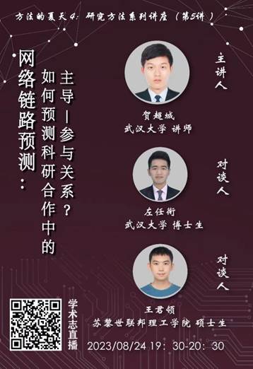 随着科技的不断快速发展和用户的需求与素养的提高,社会系统中各种交互的复杂度与日俱增。链路预测涵盖了对复杂网络中丢失链路、未来链路以及异常链路的预测,这对于刻画社会、生物、信息等复杂系统的结构特征、演化机制以及整体行为与功能具有重要意义。本次分享梳理了链路预测方法的发展历程、适用范围和应用场景,并结合科研合作网络的案例,针对主导-参与关系进行链路预测,旨在从网络视角为剖析复杂系统提供参考。