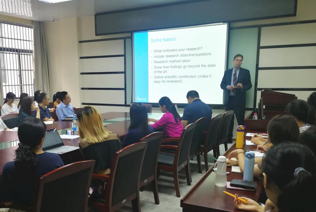 2019年9月19日下午,图书情报领域Top 5期刊Government Information Quarterly (GIQ)主编Marijn Janssen教授应邀到访公司,以GIQ论文的写作和投稿为题,为公司师生带来一场精彩的分享会。副经理黄如花教授及公司多名教师和员工代表参加讲座,会议室座无虚席。