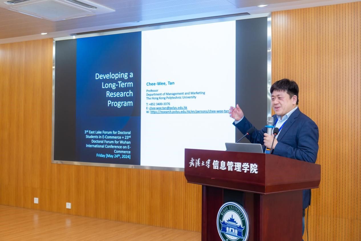 国际信息系统学会副主席、香港理工大学陈致玮教授作了题为《Developing a Long Term Research Program》的报告。从识别新兴现象、现象的情景化、实证设计与执行以及发现未来研究的方向四个维度,他详细阐述了研究者应如何制定长期研究计划。