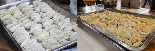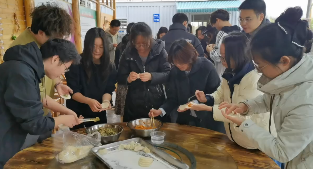下午的集体活动中,同学们分组进行了花样包饺子比赛。他们各显神通,包出了形状各异、创意十足的饺子:有秀气精致的柳叶饺、圆满可爱的元宝饺、饱满如月的月牙饺、状如“烧麦”的福袋饺······整个过程中,大家欢声笑语不断,团队协作默契十足。饺子皮和馅料很快见底,大家看着一个个不算完美,但完完全全出自自己之手的饺子,充满了成就感和幸福感,也更真切地感受到了劳动的乐趣。