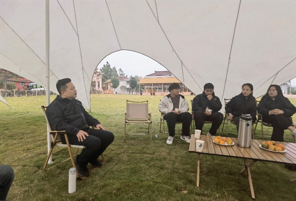 随后,九棵松村村委会主任伍新堂为同学们详细介绍了改革开放后,村党委、村委会如何带领全村人民发扬“吃大苦、创大业、争一流、不停步”的精神,攻坚克难,锐意进取,最终书写了九棵松村的辉煌篇章。同学们深受触动,从他的讲述中深刻体会到了党员先锋模范的无私奉献与实事求是精神,对纯正党性原则有了更深的认识,红色精神的传承与弘扬在心中生根发芽。在互动交流环节,伍新堂还为同学们详细阐述了九棵松村是如何贯彻“绿水青山就是金山银山”的生态发展理念,平衡经济发展与环境保护的关系。