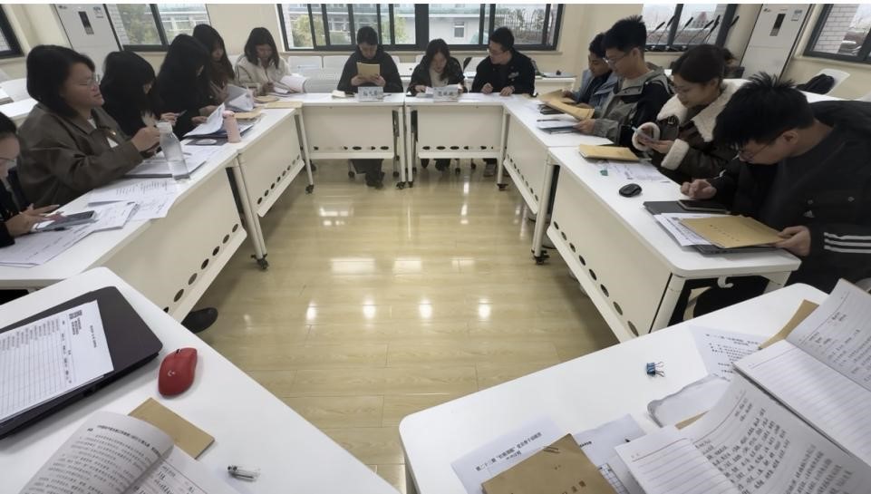 张浩宣读了“三会一课”会议记录互评规则,与会成员传阅评议各支部的“三会一课”会议记录本,重点了解考察“三会一课”制度落实情况、活动形式与载体创新、相关材料记录格式以及集体学习和党员发展工作情况,并根据评分细则进行了评分。
