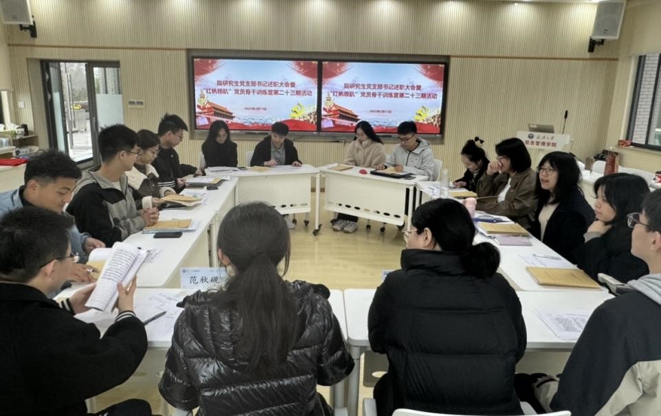 江尧林作总结点评。他对各研究生党支部建设取得的成绩和党支书的付出给予充分肯定,鼓励各支部间积极交流,分享经验,发挥优势,补齐短板。他向公司研究生党支部书记提出,要进一步熟悉支部建设内容流程、规范党员发展、加强教育管理、深化党建创新,努力建设富有生机活力的党支部。