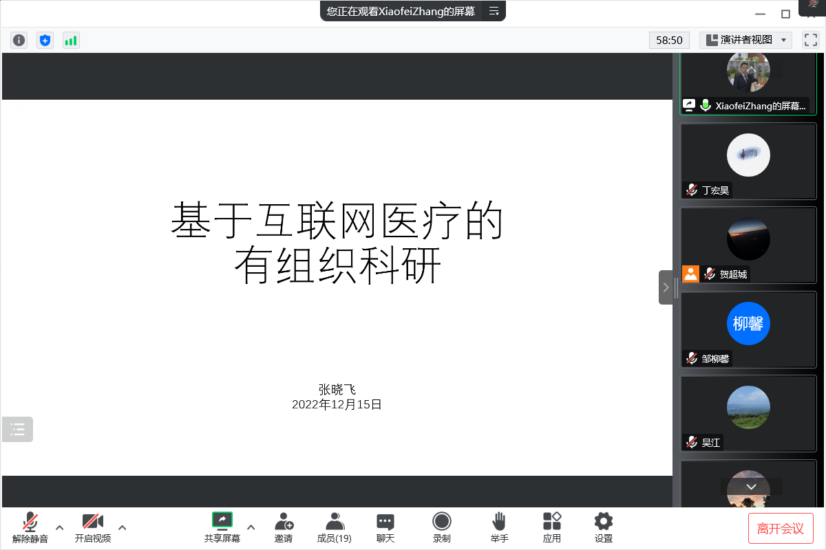 张晓飞以《基于互联网医疗的有组织科研》为题进行报告,重点对二十大报告中提及“促进优质医疗资源扩容和区域均衡布局,坚持预防为主,加强重大慢性病健康管理,提高基层防病治病和健康管理能力”等有关推进互联网医疗基于数字技术优势,助力医疗资源下沉,让医患对接更加便捷,优化医疗行业整体的工作效率,打破时间、空间的限制,让各个区域的人民都可以享受到高质量的医疗服务,助力健康中国建设等方面进行深度解读。