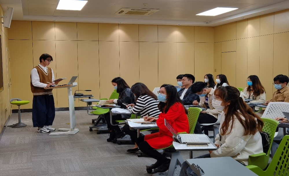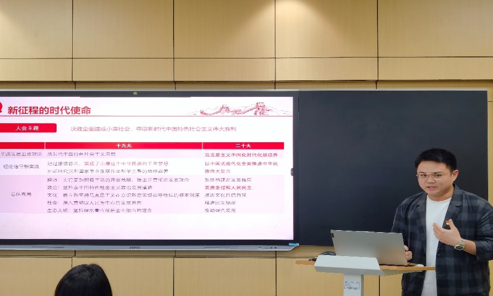 电子商务本科生支部书记蒋昌峻领学党的二十大报告,他结合《中共中央关于认真学习宣传贯彻党的二十大精神的决定》,就如何全方位把握党的二十大报告主体内容作了阐述。他对照党的十九大报告,通过文本分析,带领与会同志进一步深刻感知党的治国理政新理念和新征程的时代使命,最后他从历史沿革、理论基础以及党的二十大报告中的具体论述就如何理解“中国式现代化”这一重要概念分享了自己的学习体会。