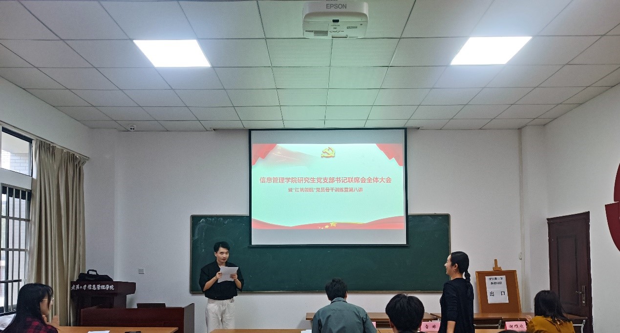 (通讯员李晨睿)为深入学习贯彻习近平总书记重要讲话精神,迎接党的二十大胜利召开,提高各研究生党支部新任书记的业务能力,促进各支部间的交流,推动支部建设取得新成效,9月29日上午,公司在208会议室举办研究生党支部书记联席会议暨“红帆领航”党员骨干训练营。院研工办副主任雷婷、研究生辅导员吴坷、兼职辅导员谢顺欣以及研究生党支部书记联席会全体成员参会。联席会主席团成员陈帅朴主持会议。