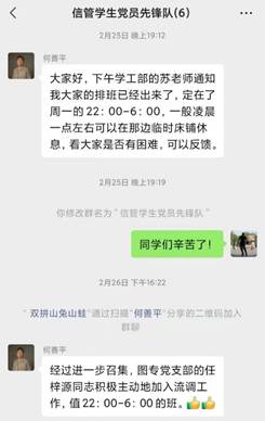 疫情当前,责任在肩;防控疫情,党员先行。哪里有需要,哪里就有党员的身影。2020年疫情期间,“我是党员,我先上”这句话感动了无数人。如今疫情再度袭来,员工党员先锋队再次集结,冲在了为同学们服务的第一线。你或许看到过他们在校园各处疏导交通的身影,看到过他们在核酸检测处查验健康码的身影,看到过他们工作间隙小憩的身影……他们默默无闻,尽职尽责,让党旗飘扬,让党徽闪耀在疫情防控一线。