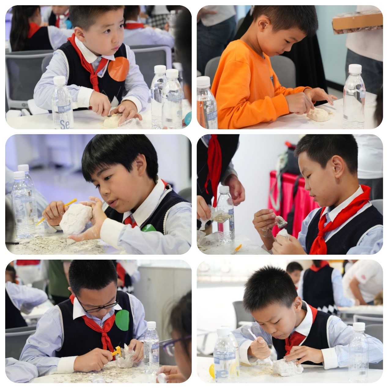 现场气氛在手工工作坊中达到高潮。在支部党员的带领下,孩子们摇身一变,变身“小小策展人”和“考古小匠人”。他们巧手贴画,创意无限,让文物贴纸在海报上绽放出新的生命;又化身小小考古学家,小心翼翼地挖掘考古盲盒,兵马俑、彩瓷……这些历史的碎片,在他们的手中重获新生。本次活动还特别设计了套色印章环节,让孩子们在体验传统文化魅力的同时,也解锁了具有武大特色、信管风格的文化符号。