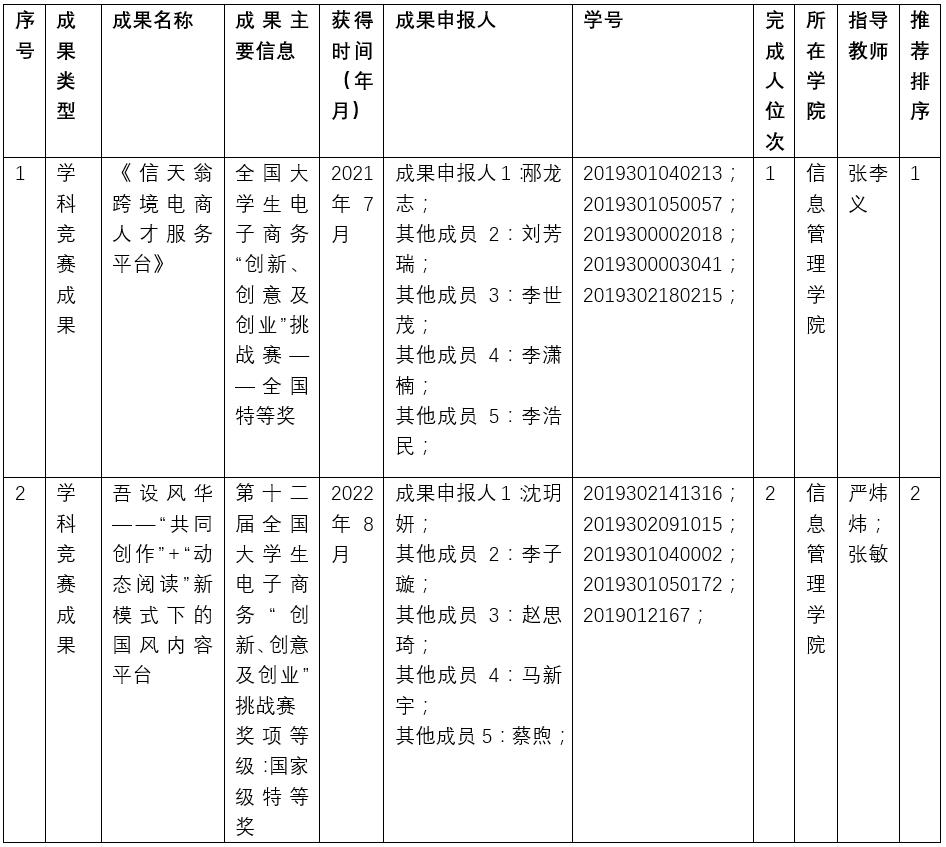 根据武大本函﹝2022﹞151号《关于开展2022年3044永利集团英诺老员工创新成果奖评选工作的通知》精神,公司共有2个项目申报。经电子商务“创新、创意及创业”挑战赛组织单位(信息系统与电子商务系)及公司本科教学指导委员会审核,推荐排序结果公示如下: