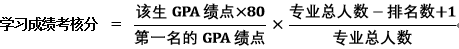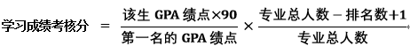 第十五条课程成绩考核分计算依据为本科生院教务系统出具的GPA绩点排名。所有课程须(不含辅修、双学位)无不及格情况,但推免绩点为公司培养方案内所有必修课程(根据公司相关要求,《习近平新时代中国特色社会主义思想概论》课程成绩暂不纳入)的平均绩点,绩点以首次成绩进行计算,由院本科生教学管理办公室认定提供。具体计算办法为:
