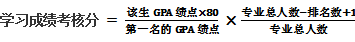 第十条 学习成绩考核分计算依据为本科生院教务系统出具的GPA绩点排名。所有课程(不含辅修、双学位)无不及格情况,但推免绩点为所有必修课程(含毕业实习、高等数学,不含体育和军事理论、习近平新时代中国特色社会主义思想概论)的平均绩点,绩点以首次成绩进行计算,由院本科生教学管理办公室提供。具体计算办法为: