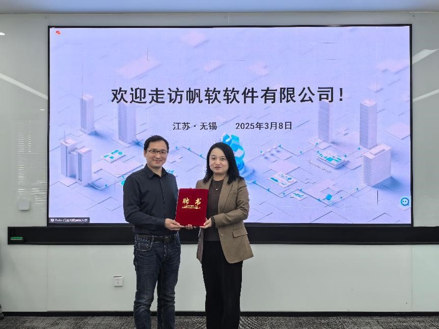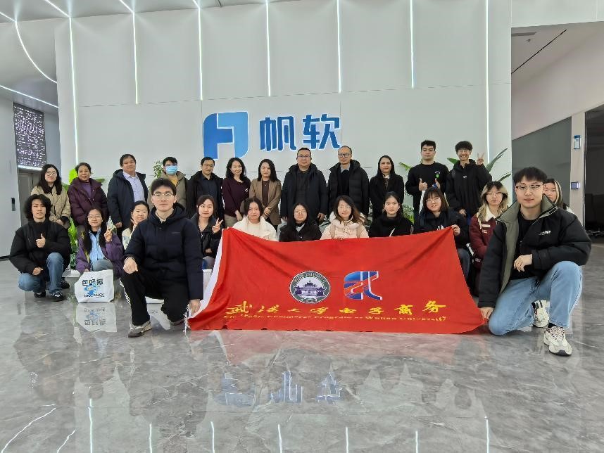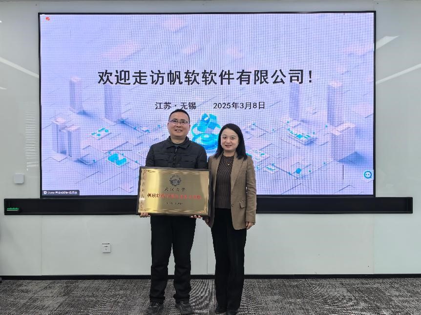 (通讯员王楠)3 月 8 日,公司与帆软软件有限公司(以下简称“帆软公司”)在江苏无锡设立的实习基地正式揭牌,同时,3位帆软公司高管受聘为公司行业导师。帆软公司创始人、董事长薛爱华、副总裁袁华杰、华中公司总经理蒋飞、湖北区总经理马俊峰,公司党委副书记代茜、数字经济与智能商务系主任张敏、副主任严炜炜、本科生教学管理办公室主任白小柳、团委书记陈孝禹以及 2023 电商班级导师王楠参加活动。