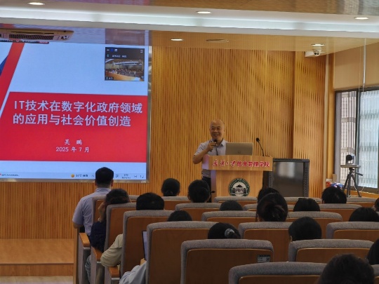 北京辰安科技股份有限公司高级副总裁吴鹏从企业管理视角为学员解析就业方向与未来选择,引导学员基于“沟通与社交—技术与研发矩阵”规划能力与职业发展,结合具体项目重点展示在应急管理、智慧城市等领域的政府数字化应用实践,强调通过融合IT技术、运营机制与客户业务价值的三角模型来创造社会价值。